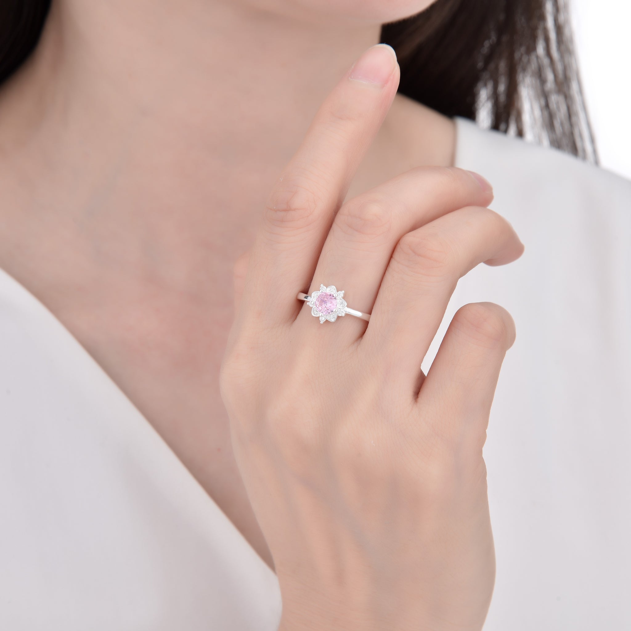 Anillo de Flor Color Rosado en Plata 925