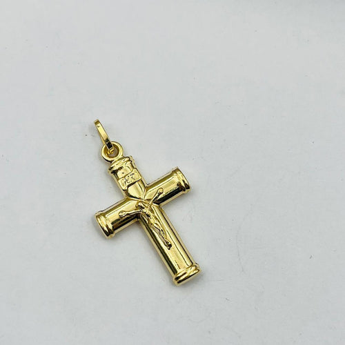 Dije De Cruz Con Cristo Modelo Aplanado en Oro 18k