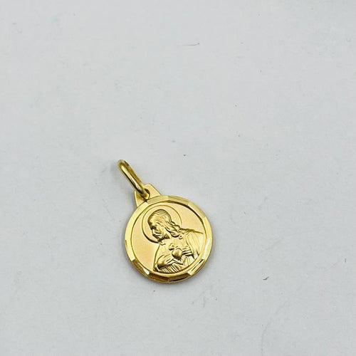 Medalla Tipo Escapulario De Virgen Del Carmen Y Corazón De Jesús En Oro 18k